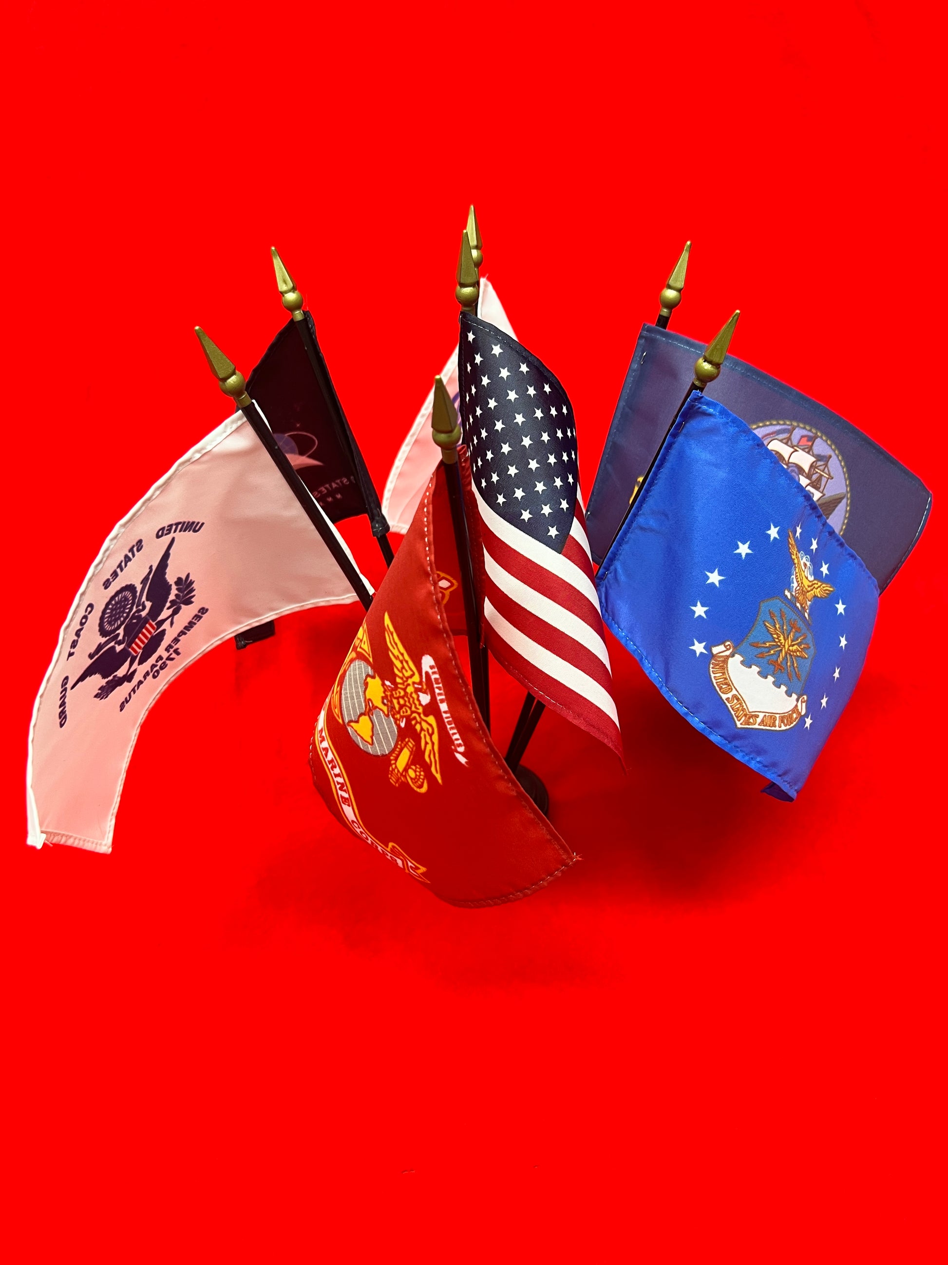 Annin 4"x6" Armed Forces Stick Flag Set, American, Army, Navy, Airforce, Marine, Coast Guard and Space Force stick flag.
