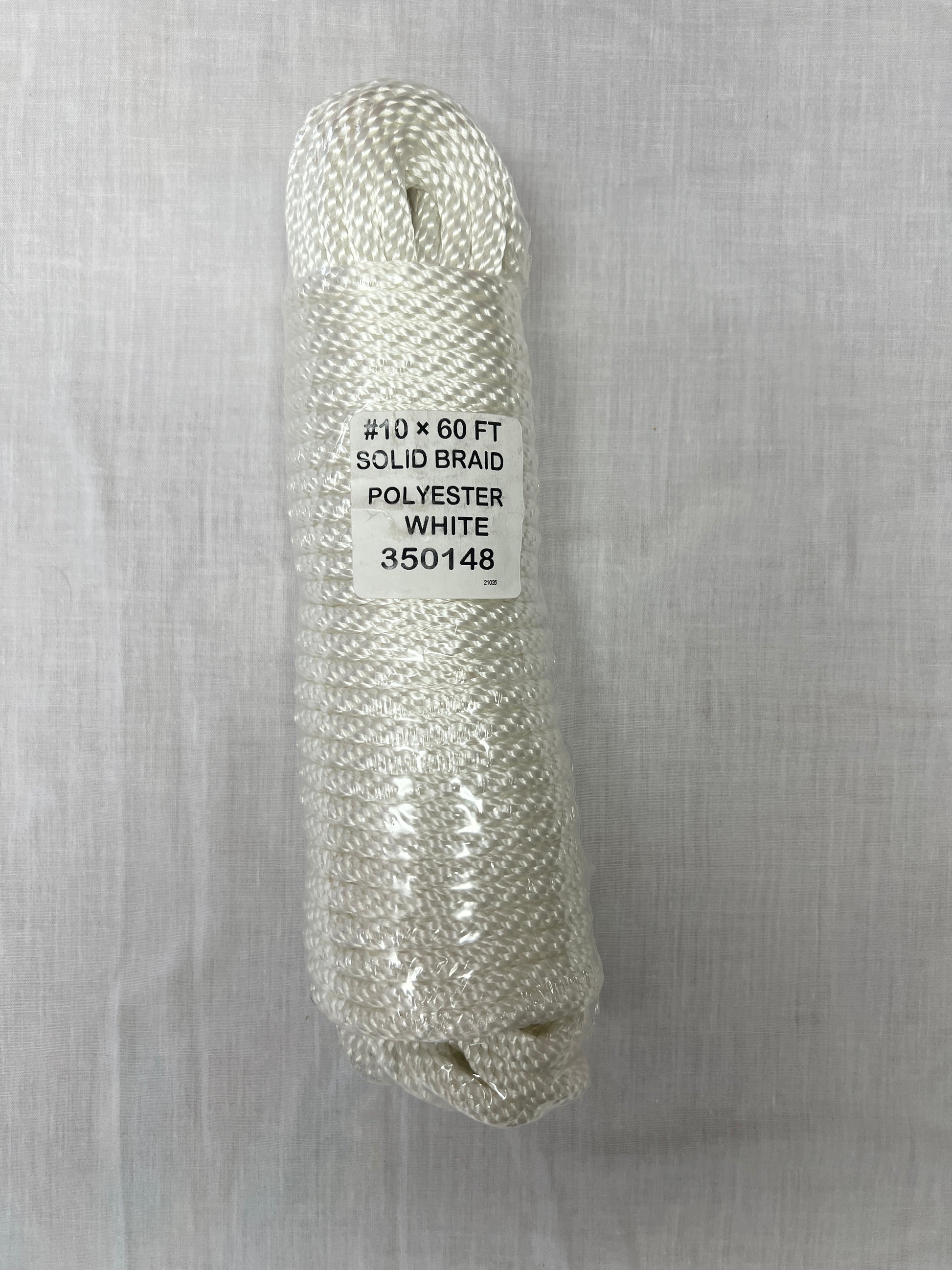 Halyard Rope 5/16", White solid braid Polyester. Made in the USA.
