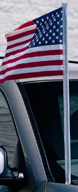 Automobile US Antenna flag 12"x18", Cloth sewn onto 32" white sleeve. Not designed for moving vehicles, Great for Car shows and car dealerships!